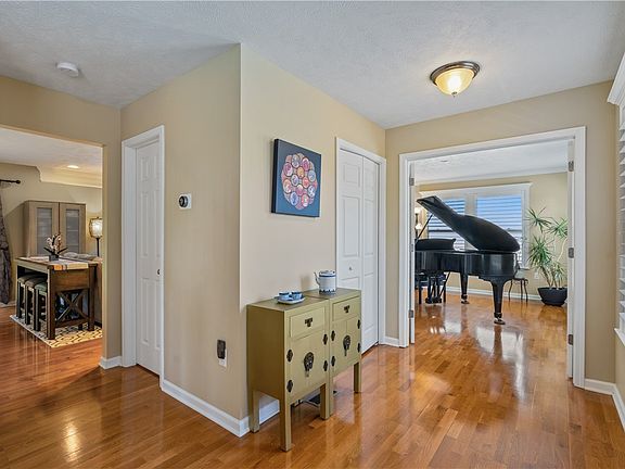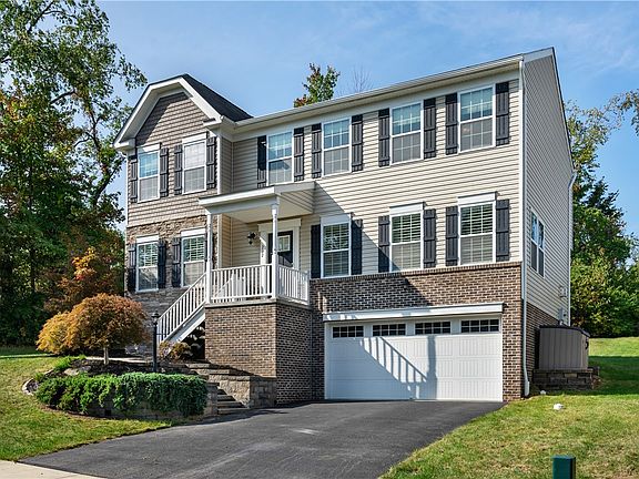 Warm and welcoming home in Foxwood Knolls! Main floor showcases hardwood flooring, abundance of windows with plantation shutters, and lovely crown molding. French doors open to a beautiful "flex-space", currently used as music room. Bright DR is the perfect place to gather and celebrate special moments. Kitchen is the heart of the home with granite counters, s/s appliances, large pantry, and sliding door to back yard. Gas fireplace in the adjacent FR provides a cozy focal point. Upstairs, the primary bedroom offers a private oasis with dramatic tray ceiling and walk-in closet. Ensuite bath includes dual sink vanity, and the oversized waterfall ceramic shower enhances the relaxing ambiance. Three other bedrooms with large closets, and easy access laundry room round out the 2nd floor. There is abundant storage throughout, including the basement and oversized garage. The home is conveniently located near Pittsburgh International Airport, parks, shopping and dining. HOME WARRANTY INCLUDED!
