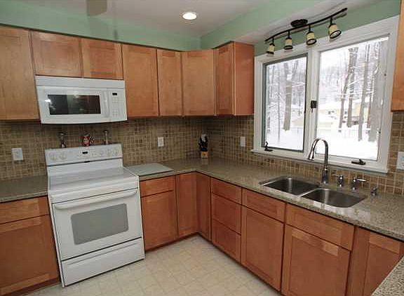 Center Split home offering new baths, new kitchen with tiled floor, tiled backsplash and granite counters. Formal living room, dining room and all the bedrooms have gleaming hardwood floors. Large family room with woodburning fireplace and slider to beautiful fenced in treed lot.
