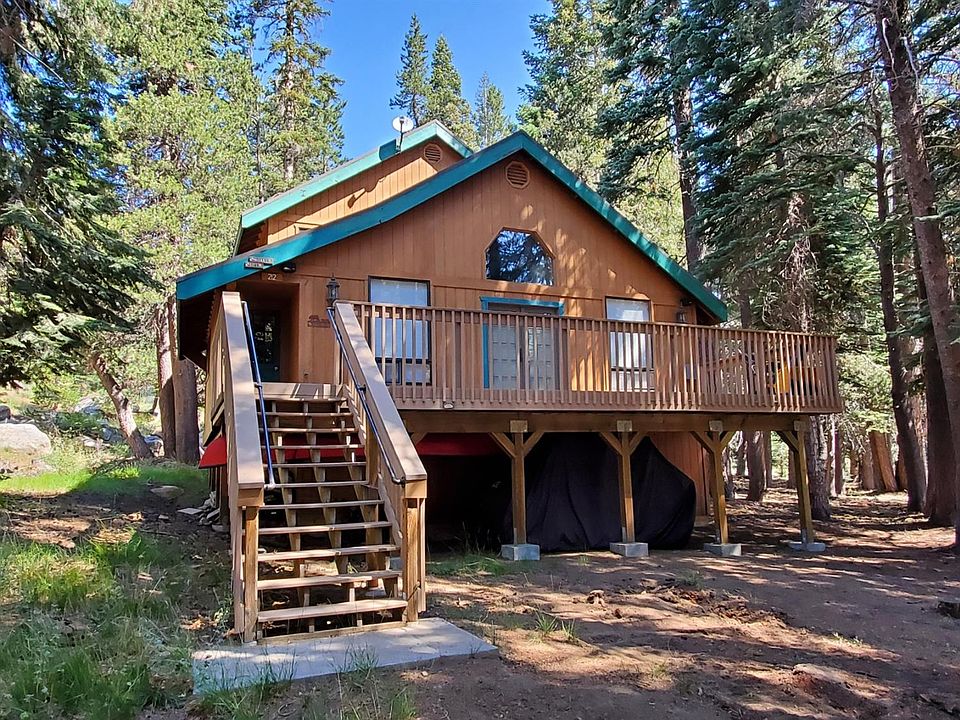 Great entertaining house in Bear Valley located on a level lot close to the Village center. A large sunny Trex deck is great for BBQing. It is engineered for a hot tub and power for hot tub is on deck. The living room offers tall windows allowing the morning sunlight to pour in. A robust wood stove stands on a hearth open to the living room and dining room. The master bedroom is upstairs. Just outside is a family room with wet bar. Full sized newer washer and dryer included.