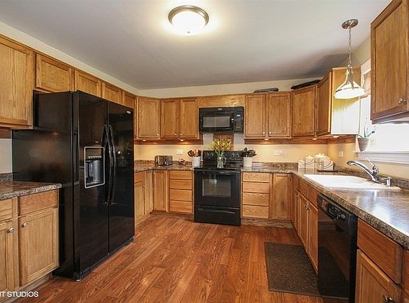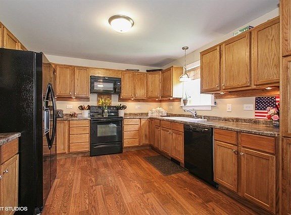 Lovely 3 bedroom home with many updates and remodeling. New kitchen design offers under counter lighting, laminate flooring, fully applianced. Large dining area boasts cathedral ceiling and built in desk area. 3 bedrooms up with full bath. 1/2 bath on main floor. Fully finished basement with family room, laundry, storage and additional space/room designed for full bath. All new windows & sliding glass door. New roof 2017. New super sized deck overlooks backyard that opens to green space. Landscape bricks accent stairs and walk ways. New garage door. Newer 3 zoned forced air furnace, central air & humidifier. A true pleasure to show.
