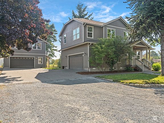 Country living with city amenities! Fully upgraded main house plus detached 27x26 shop with ½ bath, utility sink & 2nd floor Apartment. Main home has 4 spacious bedrooms, 2nd floor family room, office/den & huge laundry room. Primary bedroom features 5-piece bath & large walk-in closet. SE facing wrap-around porch is great for entertaining w/ gas hook up ready for grilling. Detached 896sq ft apartment features 1 bedroom + office, includes kitchen appliances, AC & entrance separate from lower garage. This rare 3.98ac property is close to town, Skagit Transit & min to I-5. Highlights: 2023 AC, EV charger ready, upgraded lighting, new appliances, freshly refinished hardwoods, smart home controls, ready to rent apartment. Amazing location!