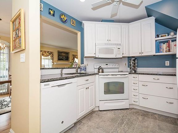 It's a FAVORITE at SUMMIT VILLAGE! Are you looking for EASY LIVING ALL on ONE FLOOR? This CORNER UNIT gives the feeling of a SINGLE-FAMILY RANCH while enjoying the AMENITIES of condo living. The EAT-IN KITCHEN has NEWER WHITE CABINETS, GRANITE COUNTERS, and TILE in the working area. The BREAKFAST area has NEWER HARDWOOD FLOORING, as do ALL OTHER ROOMS except the baths and laundry. The OPEN FLOOR PLAN is surprisingly conducive to a good-sized GATHERING. The MASTER SUITE handles a KING-SIZED bed easily, and also boasts a WALK-IN CLOSET. The MASTER BATH has been COMPLETELY done over with a beautiful WALK-IN TILED SHOWER with GLASS ENCLOSURE. The SECOND BEDROOM is being used as a DEN/OFFICE, but with its TWO CLOSETS, the choice is yours. The MAIN FULL BATH has also been UPDATED. The OVER-SIZED LAUNDRY ROOM has plenty of STORAGE space, as does the ONE-CAR GARAGE which has DIRECT ACCESS to the unit. As spring reappears, you'll appreciate the PORCH directly off the dining room.
