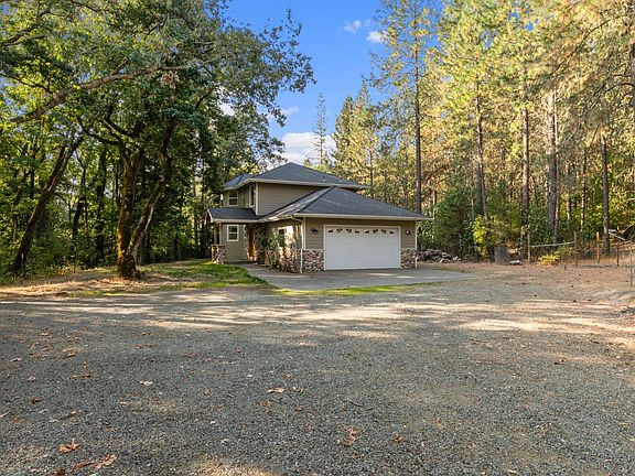 Luxurious Executive Custom-Built Home –Feels and Looks Like New! Just minutes from both the Rogue and Applegate Rivers this home sits on almost a full acre in a tranquil woods-like setting though it is still only minutes from downtown and the highway. The home boasts 3 bedrooms and 3 full baths along with downstairs office/den with french doors that could be a 4th bedroom. There is also a grand canning/storage pantry and a full laundry room with its own sink The home has tall open ceilings and feels larger than expected. The large master suite is upstairs with a big walk-in closet, ensuite bathroom and soaking tub with its own private balcony in the trees. The house is set back off the road and looking out every window you will see picturesque landscape and views of nature. Seasonal creek runs through creating a relaxing atmosphere and nearby wildlife.
