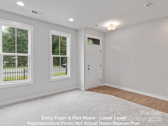 Move in April 2025! Discover Walk23, where vibrant living meets modern convenience in downtown Huntersville. Beacon plan offers 2 bedrooms, 3.5 bathrooms, and a 1-car garage with upgrades throughout. First floor features a flex room with a full bath, perfect for an office or guests. Kitchen boasts a central island, 42" kitchen Downing Linen cabinets, Iced White Quartz kitchen countertops, and balcony access, flowing into a spacious dining and living area. Juliet balconies off the living room flood the space with natural light. Upstairs, the primary suite offers two closets, dual vanities, tile bath floors and a large walk-in tiled bench shower. The second bedroom also features a private bath and walk-in closet. With quick access to I-77, commuting to Charlotte is easy. Power lines will be relocated underground. Enjoy walkable access to restaurants, breweries, and greenways, making this a truly unique community. CONTACT FOR DETAILS!