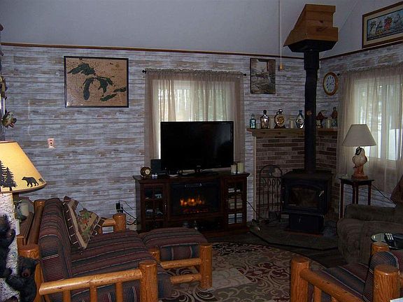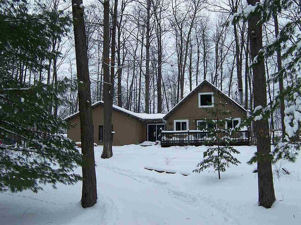 A picture-perfect hilltop setting! This year round home built on three large wooded lots offers privacy and a yard of natural beauty. Walking distance to the South State Park & Beach, state land, and the popular Markey Twp. Park. Designed and built with a side entry garage and circular driveway to maximize curb appeal and space for many vehicles. Owners have added many new features in the past year. They include 5 inch well system, energy efficient vinyl windows, 4 patio doors (Jeld Wen), laminate flooring on main level, and all new bathroom. Natural gas has been installed to the home for future use. The open floor plan offers open volume ceilings, a kitchen island that is moveable, and an efficient wood stove for a second heating source. The upper level bedroom features a lanai for your outdoor morning meditation, and the main level offers three exterior decks. This is the perfect location for your summer or primary home.