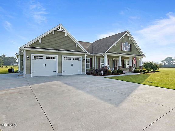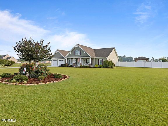 Check out this beautiful, custom built ranch on nearly 1.5 acres in the county. If you've been dreaming of living in the country, today might be your lucky day! This three bedroom home has so much to offer with its custom finishes. The fireplace has built in bookcases, there are plantation shutters throughout, a built in mud room area with hooks and bench, hardwood and tiled areas and additional special touches! The primary suite includes a luxury bathroom with a fully tiled shower, extra long soaking tub and a large walk in closet. The second bedroom has its own en suite full bathroom and the third bedroom sits across the hall from the third full bathroom. With a tech room with built-in cabinetry, a study and a flex room to use as you please, this home truly is a dream! A chef's kitchen awaits with a large kitchen island, built-in double oven, gas top range, commercial sized freezer/refrigerator, large eat in dining area and an incredibly spacious walk-in pantry. You will be the envy of all your friends! Step outside to the spacious screened-in porch that overlooks the back yard and is adjacent to a nice patio for those cooler Carolina nights! The inground saltwater pool is fully fenced with white vinyl fencing and comes complete with a pool house for supplies and accessories. A cabana covers the picnic area just beside the pool so you can escape the sun while watching friends and family enjoy the water. A large outdoor 3-bay building at the back of the lot, makes for a great workshop area and or boat storage. The attached oversized garage is perfect to accommodate larger vehicles. The extra long and wide driveway has ample space for parking and includes an extra parking pad. You won't want to miss this unique gem! *Buyers agent to confirm schools.