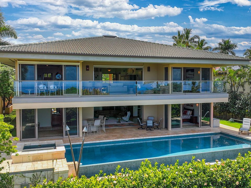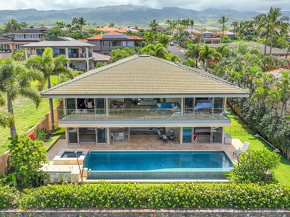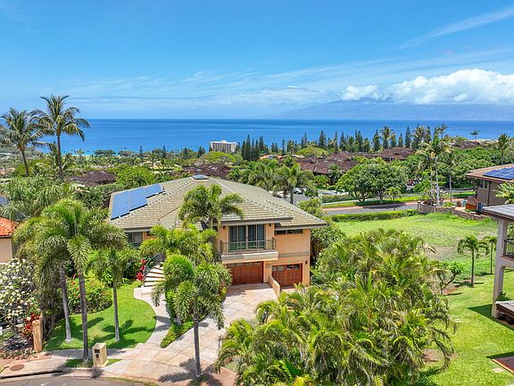 Views! Views! Views. Picture yourself sitting on this lanai, with your favorite beverage watching the whales play, with stunning views from the south of Lanai to the northern tip of Molokai. Kaanapali is famous for its warm weather, outstanding beaches, snorkeling, golfing, dining and shopping, and the best part is everything is a short drive away! Nestled amidst this lush, tropical scenery IS the home and Island getaway you have been waiting for! Once through the entryway of this exquisite Hawaiian-infused home, you'll be captivated by the perfectly framed view that greets you! This home features steel frame construction with spacious interiors and large pocket sliding doors that open to oversized lanais which invites you to enjoy the beautiful indoor/outdoor island lifestyle. The sprawling open-concept living area exudes a sense of tranquility, with floor-to-ceiling windows that frame the panoramic Ocean view. A custom, one of a kind glass staircase will take you from the main living room up to a lofted bedroom. The downstairs area boasts an equally large second living space with its very own mini bar. On the main level the gourmet kitchen is a culinary enthusiast's dream, featuring top- of-the-line appliances, sleek custom cabinetry, and a spacious island with the perspective to ensure everyone seated is able to enjoy the views. The master suite is its own private oasis. The large his/hers walk through closet offers plenty of room and the ensuite bathroom showcases luxurious finishes with a walk-in shower, creating a spa-like experience. Outside, a meticulously landscaped backyard awaits! It is complete with a sparkling infinity pool with jacuzzi and a large patio area ideal for hosting social gatherings or to simply lounge under the shade of swaying palm trees, sip on a refreshing drink, and bask in the captivating beauty of your own paradise. The multi-level garage has ample room for 3 cars, OC1 kayaks, bikes, sports and activity equipment and anything your island lifestyle can imagine to need. As an added bonus, This home is equipped with a photovoltaic system with NET energy metering to make island living even more eco-friendly. A home of this caliber is a special find! Imagine yourself here and creating the life style you have always dreamed of. Make arrangements today for the opportunity to preview this captivating luxury home!