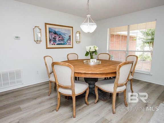 Super cute, updated split-plan home with excellent curb appeal in close proximity to both Fairhope Middle School and Fairhope High School. With 4 bedrooms, 2 baths, and a bonus room (currently being used as a storage room), there is plenty of space. Upon entering the home, the dining room is to the right and is open to the spacious great room. The kitchen features stainless steel appliances, quartz countertops, a nice backsplash, painted cabinets, pantry, breakfast bar, and breakfast area. Primary bedroom is large and primary bath has double sinks with quartz countertops, separate garden tub and shower, two walk-in closets, private water closet and ceramic tile flooring. On opposite side of home, the bonus room and 3 bedrooms share a full hall bath. Utility room with storage cabinets and additional pantry leads to two car garage. Open back patio, large fenced backyard with storage shed. Updates include: New HVAC 2016 and 2017 inside and outside, 5-ton, new fortified roof January 2022. Updates since July 2022: Paint interior of home pure white, removed popcorn ceilings, new light fixtures and fans throughout, removed tile floors, new LVP flooring throughout, painted garage walls and floor, new mailbox, removed all wire shelving and put in wood shelves and rods for closets, new door locks, new pulls on cabinets, new faucets, new toilets, new front door, painted all inside cabinets SW Natural Choice, new quartz countertops, added backsplash in kitchen, new exterior lights, added garbage disposal, removed attic decking and added new attic decking, new hot water heater, added outside shed in backyard, replumbed house, and upgraded landscape. The seller is a licensed real estate broker in the state of Alabama. All information provided is deemed reliable but not guaranteed. Buyer or buyer’s agent to verify all information. Buyer to verify all information during due diligence.
