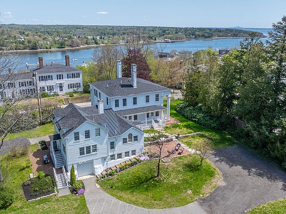 Mayor's Mansion, home to the first Mayor of Belfast, is now renovated with exacting detail. This historic Greek Revival is located in the center of Belfast Maine sited along the waters of Penboscot Bay. Re-built and tailored to meld historic molding, high ceilings, enhanced wood features throughout and unique kitchen features with modern conveniences including granite countertops and re-fitted baths for every bedroom. The renovation intentionally retained classic features while creating an extremely easy to live in vibe for today's lifestyles and needs. The main house has three bedrooms, a butler's pantry, formal sitting and dining rooms and a pool room for entertainment. Rent the amply spaced two-bedroom apartment and or main house for great income as evidenced by recent rental history and current rental schedule. In-home occupation and office spaces abound, large windows let immense daylight stream in all day long and the apartment has it's own access while easily being able to be part of the main house if desired. Endless amenities include updated utilities, two great boilers, select new custom windows, a new roof, recent painting, and more. The extraordinary downtown oversized 1.50 acre lot allows for further division of two more lots off the back with frontage on Waldo Ave while retaining ample land to balance the grandeur of the house with frontage on High street. Special exterior features abound with a custom designed stone surround fire-pit, a pickle-ball court, two storage buildings and ample parking, covered porches, and architectural columns.