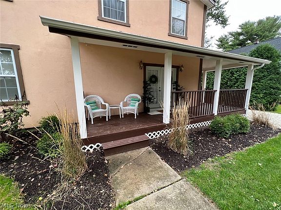 Beautifully updated Hartville 2 story. This home has been remodeled inside and out. The main level features a large Living room with gorgeous wood flooring a fireplace with an open staircase to the second level. A large case opening leads to the dining area and kitchen with new stainless appliances (2017). A hall way off the dining area leads to the main floor laundry, a full bathroom and a large main floor bedroom. The 2nd floor has 3 more bedrooms with nice sized closets and another full bathroom. From the kitchen you exit through sliding glass doors to a huge deck (2013) and off the deck into a level completely fenced backyard featuring a large fire pit circle. This home is all set to entertain and enjoy with family and friends. The property has on oversized 2 car garage (26x30) plenty of room for your vehicles and some toys. Updates include exterior new stucco siding, roof and windows (2013), central air and new stainless steel Samsung appliances (2017), new vanity in first floor b