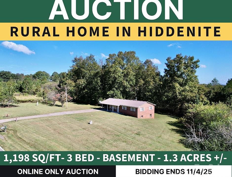 SELLING VIA ONLINE ONLY AUCTION, LIST PRICE IS CURRENT HIGH BID PLUS BUYER'S PREMIUM. Real Estate Auction – Peaceful Living in North Iredell County, 212 Hill Farm Road, Hiddenite, NC with 11.3± Acres Available. Don't miss out on this online only multi-parcel auction, allowing bidders to bid on just the adorable brick home, just the large acreage tract with well and shop, or a combination of both. The multi-parcel process features multiple rounds of bidding and will not end until there is a 3 minute period with no bids on each of the 3 lots, giving everyone a fair chance to be a WINNER! See auction terms for complete details on multi-parcel bidding. LOT #1 – Brick Home on 1.3± Acres - This solid all-brick 3-bedroom, 1-bathroom home is nestled in the peaceful countryside of Hiddenite, North Carolina. Located on a spacious 1.3± acre lot, this property offers quiet rural living with plenty of room to stretch out, garden, or simply enjoy the open rural views. Step inside to find a traditional floor plan ready for your personal touch. The brick exterior provides lasting durability, while the surrounding farmland views set the tone for relaxed country living. Enjoy the peace and privacy of a rural setting, yet remain conveniently close to Statesville, Taylorsville, Wilkesboro and surrounding communities. Whether you’re looking for a starter home, a rental investment, a mini-farm or a place to downsize and enjoy small-town life, 212 Hill Farm Road checks every box. LOT #2 – 10 +/- Acres - Don’t miss this incredible opportunity to own 10± acres of versatile land in the peaceful countryside of Iredell County. This predominately wooded property features a working well, a 20’x20’ metal workshop, and multiple additional outbuildings, making it ideal for a wide range of uses. The land includes a large garden area ready for planting and offers approximately 200 feet of road frontage on Hill Farm Road. Whether you’re looking to build additional homes or workshops, create a private retreat, or simply enjoy the space and seclusion, this property has the flexibility to meet your vision. Outdoor enthusiasts will appreciate the opportunity to hunt the abundant big game that frequent the area, while those seeking tranquility will love the natural privacy the acreage provides. This 10± acre parcel adjoins the 1.3-acre tract offered as Lot #1 in this auction, presenting an exceptional chance to expand your holdings or create a larger homestead. Bring your vision and make Hill Farm Road your next investment or country getaway! LOT #3 – Combination of the House with 1.3± Acres AND the 10± Acres -This lot is a combination of the properties offered in lot numbers 1 and 2 of this auction. If the final high bid price of lot 3 is higher than the combined total of lot 1 and 2, then lot 3 will be the winning bidder. If the final high bid of lot 3 is less that the combined total of lot 1 and lot 2, then lot 1 and 2 will be sold to their respective high bidders. ONLINE ONLY AUCTION - Bidding ends November 18th, 2025 at 6 PM Public Preview / Open House Date: November 2nd, 2025 from 2PM to 4PM, November 16th, 2025 from 2PM to 4PM or by private showing. Note: A survey has been conducted to remove the house and 1.3± acres from the original large 21.37 acre parcel. This survey has been completed and is available on the auction website. The survey will be recorded prior to closing. The Seller has now decided to sell an ADDITIONAL 10± acres of the original large 21.37 acre tract. A survey is in the process of being completed. See the auction website for an estimate of the proposed lot lines. Once the updated survey is complete, it will be uploaded to auction website.
