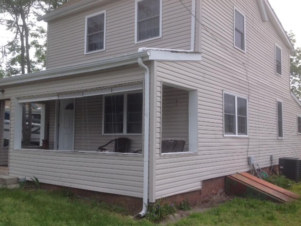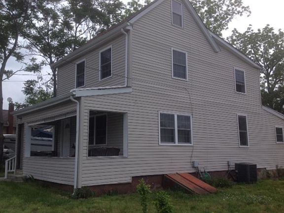 This 2 bedroom home also has a walk up finished attic area. There is an updated gas furnace, gas HW heater and central air unit that the present owner has never used. The large country kitchen provides lots of counterspace to enjoy your meal preparations and entertaining. Nice sized dining and living rooms with laminate flooring and living room presently has a wood stove. Not sure if owner had permits, so you keep or remove to meet your own preference. There are full sized stacking washer/dryer on 2nd floor and generous size bedrooms. The lot boasts 75' x 115' and has an apron at the curb to add a driveway. Very large side yard could allow lots of parking. Trees were removed, so that big cost is not your problem. Wood in rear yard was from removed trees so hope the Buyer accepts the wood, but a negotiable item. Owner wants to sell as-is and prefers quick closing. NOT a short sale, so bring your offers. This home only needs some TLC, so great for the first-time buyers or investors.