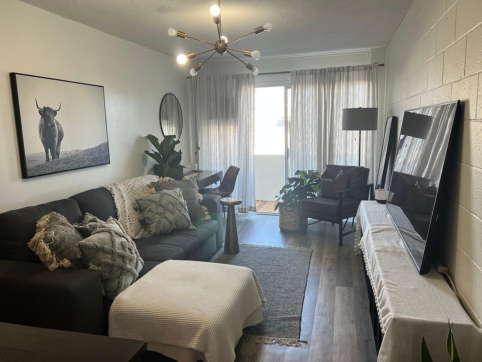 Welcome home to this pet friendly 3 story walk-up with assigned parking. This second floor unit comes furnished with queen bed, sectional sofa, tv, dining table, and bathroom organizer, and is available April 1. The rental features 2 window a/c units to keep you cool, vinyl flooring, gas stove, stainless steel appliances, remodeled bathroom, and lanai with storage space. Washer and dryer is located on the ground floor. Great location in close proximity to Queen's, downtown, freeways, and grocery store. Open to short or long term lease. Security deposit and pet deposit required. Tenant to provide proof of income and rental references. Maximum 2 tenants allowed. Renter pays all utilities except water. Utilities are electric, gas, internet.