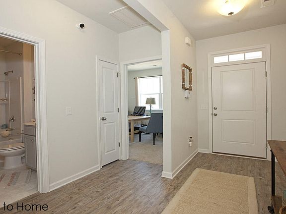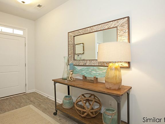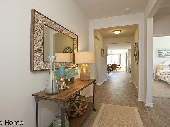 This Aria plan has a great open design with 9-ft high ceilings. The Kitchen features 36'' painted Maple cabinets with crown molding, Stainless Steel Appliances including Refrigerator & granite counter height Island overlooking the spacious Living Room and Dining Room which is great for entertaining. Low maintenance Luxury Vinyl Wood Plank floors throughout the living area. Leading off the Dining Room sliding doors is a 12 x 10 ft. covered porch. Owner's suite offers a large walk-in closet and bath with 5 ft. shower, soaking tub, double cultured marble vanity and sinks and private water closet. Home sits on a gorgeous wooded home site just minutes to the beach or base. Two miles from boat launch, close to Lejeune back gate.