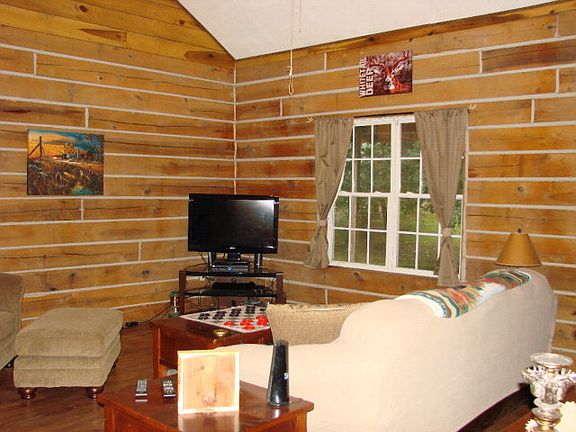 LOG HOME WITH OPEN FLOOR PLAN, NEW CHA, BEAMED CEILINGS,3 BEDROOM 2 BATH, WORKSHOP, WOODED, SCREENED IN PORCH WITH HOT TUB, AND CLOSE TO AMENITIES!
