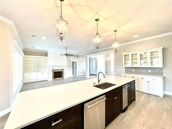 - Attic, Breakfast Bar, Breakfast Area, Tray Ceiling(s), Coffered Ceiling(s), Gourmet Kitchen, Kitchen Island, Pantry, Pull Down Attic Stairs, Ceiling Fan(s)