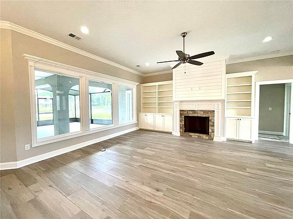 This is a gorgeous, like new home! Seller is motivated, make us an offer. At 2,788 sq ft, this home has tons of space! All flooring is wood look tile except for the bedrooms, which are carpet. The kitchen has custom cabinets, quartz counter tops, and an over-sized island. The large master suite has a huge walk-in closet, large soaking tub, dual vanities, and tile walk-in shower. One of the guest bathrooms also features tile walk-in shower. The living room and family room have a great view of the pond with a sliding glass door. The living room has a fire place with built-ins surrounding it. This home also has a 3-car garage finished in T1-11 paneling. Lawn care is included in the HOA as well as access to the amenity center. Wake up for a refreshing beautiful Waterview from the property backyard. This is a roomy and comfortable 4 Bedroom 3 Bath ranch home which, features almost 2800 square feet with the master on one side and 3 more bedrooms on the other side. The rear patio/lanai is screened-in and provides open fresh air for outdoor relaxation. There are motorized window shades with remotes in the living room and family room, the 3 living room shades have the tilt function. There is a lighted fountain in the lake that provides a beautiful view and a relaxing sound at night, it also operates on a timeclock. This home includes the matching brand name refrigerator, GE Cafe as most all new built homes do not include the refrigerator. There is an access to the attic with pull-down stairs in the garage with plenty of attic deck boards for storage. The attic also has spray foam insulation throughout which lowers the attic temperatures. The walk-in pantry lights up as you open the door. All restrooms have a nightlight switch for undercabinet lighting. The home also features a whole house water softener with an added hose connection in the garage and a water filtration system, a LP gas tankless water heater. The large master bedroom features a trey ceiling with triple windows that offers fantastic water views. This home has easy access to Interstate 95, the historic coastal community of St. Mary's, Cumberland Island, Kings Bay Naval Base, the Jacksonville International Airport, and more. Within the gated community of Fiddler's Cove, you will have access to a fitness center, playground, clubhouse, swimming pool, tennis, pickleball and basketball courts. The annual HOA dues take care of the weekly grass mowing, weed eating, blowing, and irrigation water supply on your property. The 3-car wide driveway is enough space to park 6 or more additional cars for your family or guests. VIRTUAL TOUR - https://my.matterport.com/show/?m=sa2b7u2nMaK