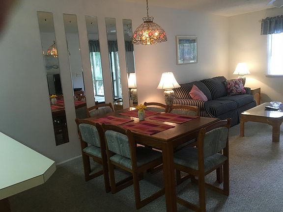 Apartment is ground floor, carpet and stone tile. Rent includes electric, heat/AC, water, cable, garbage removal. Close to Intercoastal Waterway and beautiful ocean beach. Small dog acceptable with $50 up charge. Non smoker and long term preferred. Screened porch on lovely golf course in Sea Trail Plantation. Swimming pool, exercise room and restaurant available. Two miles to shopping. Owner lives on-site.