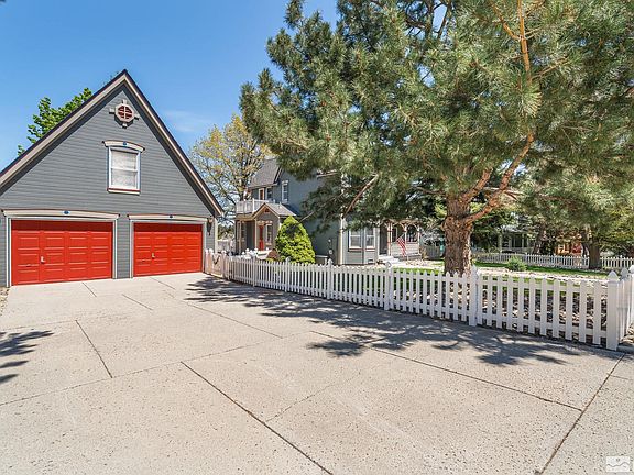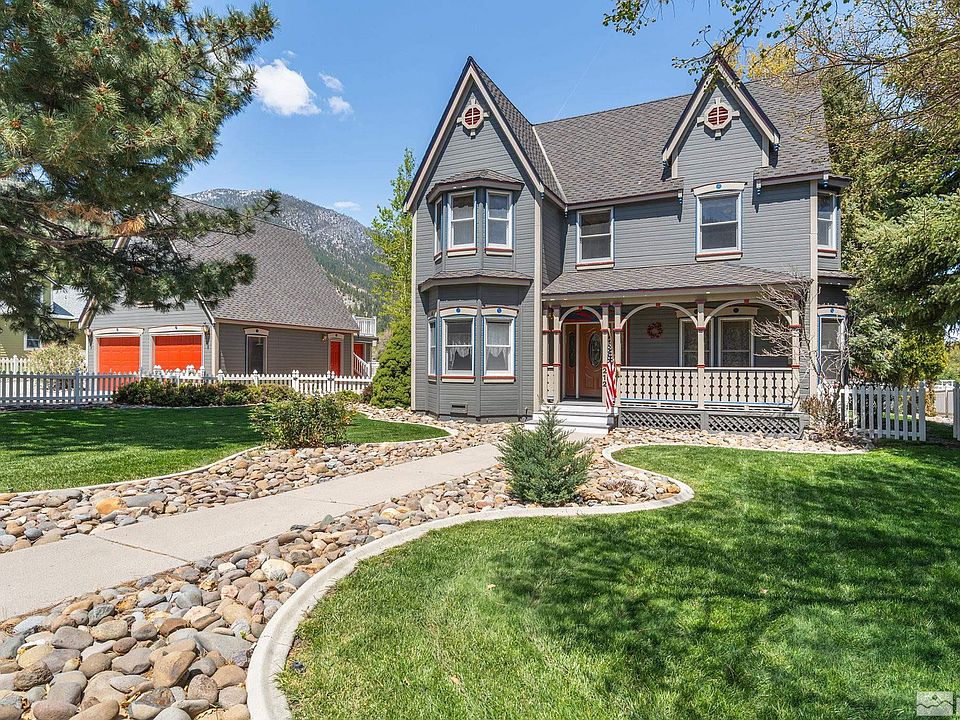 Beautiful custom Victorian home located on the highly desirable Kinsey Way in Genoa. Steps from the center of town w/ deer often in the front yard. Step inside this 3 bedroom 2 1/2 bath with large windows for natural lighting throughout. Kitchen has new sink and marble countertops with added trash compactor. New French doors opening into the large tv/family room. Home features Victorian stained glass panels on windows in sitting room as well as new west side entrance with stained glass door., This home features a bonus 4th bedroom above the garage with private bathroom. Spacious oversized garage with workshop for your projects. Relax in the hot tub with views of the lush, landscaped backyard with mature trees and views of the mountains.