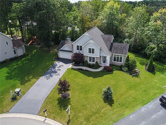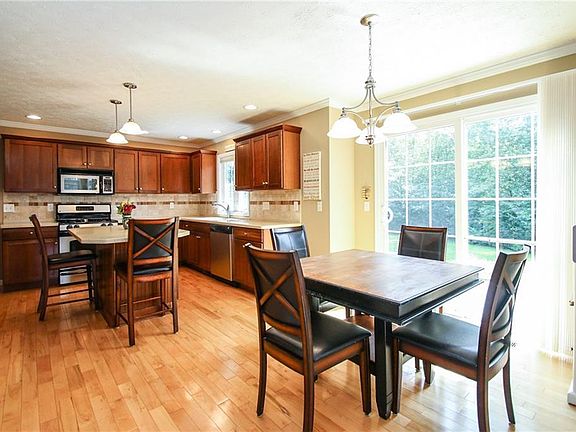 Welcome to this 2006 built contemporary colonial on a cul-de-sac. Inside you will find beautiful maple floors, a cherry eat-in kitchen with corian countertops and stainless steel appliances, a large great room with a cathedral ceiling and gas fireplace, and a first floor office (which could also be used as a 4th bedroom and measures 11' 8" by 11' 4"). Enjoy dinner parties in the formal dining room. Upstairs you will find 3 large bedrooms including a large master suite with two walk-in closets and a master bath with a jacuzzi tub. Escape to the partially finished basement (-500SF of additional living space) This home has a high efficiency furnace, a new tankless water heater, and first floor laundry. Entertain outside on the over-sized stamped concrete patio on a private, wooded lot.