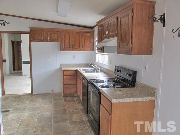 Amazing opportunity to purchase a great manufactured home at end of road, wooded lot, large front porch. 3 Bedrooms with master on one side and 2 bedrooms on other side of house. Living room and dining room combo, eat in kitchen area. Good road access to Hwy 70 bypass and I-40, convenient to Clayton and near hospital. Two detached storage sheds on property. Act fast to make this your new home!