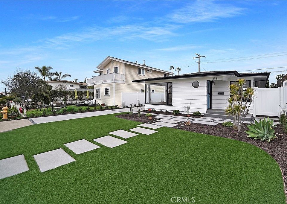 THE GOOD LIFE - Exquisite single-story coastal cottage with a separate guest cottage that has been completely renovated located two blocks from the beach . The main house includes 3-bedrooms and 2-baths and the guest cottage includes a family room, 1 bedroom, 1 bath and a kitchenette perfect for a multigenerational family or caregiver. Garage can easily be modified by Seller to function as a garage as well. New interior finishes include new driftwood laminate flooring, baseboards, recessed lighting, tankless water heater, EV Charger and all new plumbing & electrical throughout. The bedrooms include mirrored closet doors with closet organizing systems and the bathrooms include all new finishes with double vanities with quartz counter tops. You will love cooking in this large chef’s kitchen including new stainless steel appliances, hardwood cabinets with soft-touch hardware, quartz counter tops, hand painted tile and an LG Tower washer & dryer. The home is beautifully landscaped with succulents, drip irrigation, synthetic turf, a quaint courtyard with bistro lights and new concrete driveway & patios with black Mexican pebble accents. This property is centrally located to local shops, restaurants, the Metro Train Station and world class beaches.