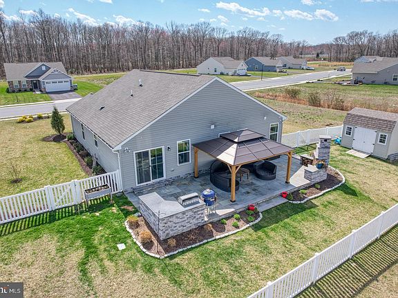 Welcome to 212 Laertes Drive in the 55+ community of Verona Woods. This former model home is in pristine condition and only available due to a job relocation. As you enter the foyer, the two guest bedrooms and full bath are there which adds privacy for your guests. Further down the hallway, you will pass the formal dining room with crown moulding. The main living area opens to the kitchen with an oversized island, stainless steel appliances and a breakfast area for casual dining. The open airy space combines the living room, kitchen and breakfast area and creates a casual, comfortable flow. The owner's suite includes a private bath with a large walk-in shower, double vanity and a walk-in closet with custom organizers. Low maintenance LVP flooring is throughout with wall to wall carpet in the secondary bedrooms and tile flooring in the bathrooms. Then there is the incredible outdoor space! This lot backs to private open space with pond views. A beautiful spacious paver patio includes an outdoor kitchen with grill and refrigerator, a stone wood burning fireplace and a covered area for casual seating. This is an energy efficient home with tankless gas hot water heater, LED lighting, and a programmable NEST thermostat. A 2 car garage, vinyl fencing and a storage shed complete the outstanding features included in this home! Amenities include lawncare and snow removal. A Clubhouse is under construction for a future community gathering place. Don’t wait to make your appointment! Won’t last long.