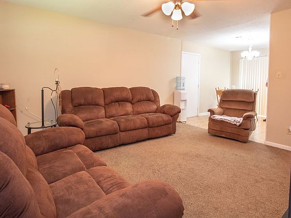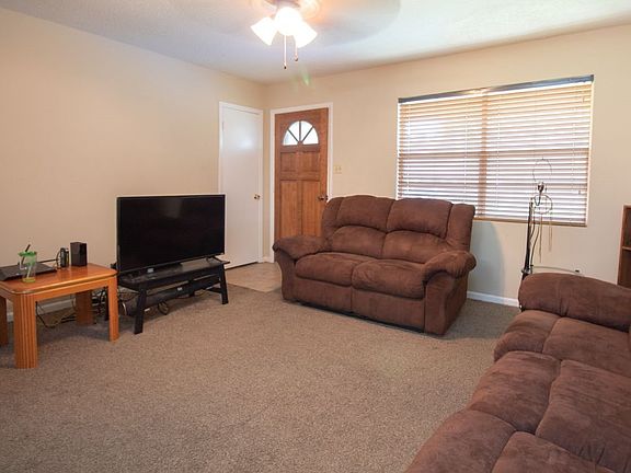 Nice 3 bedroom, 2 full bath starter home. Home features carpet that is less than 4 years old. Updated Master bathtub and shower, window blinds, and laundry room located in the garage. Beautiful fenced backyard with storage building. Great find!