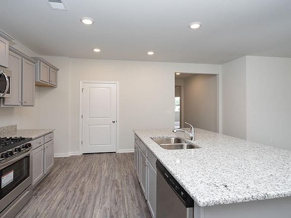 The Aria floor plan is the perfect choice for any stage of life, whether you are buying your first home or downsizing. You'll fall in love with this floor plan in our quiet natural gas community. This home features an open concept living room and kitchen that are great for entertaining. The kitchen boasts stainless steel appliances with a gas range, 36" gray painted cabinets, and granite countertops with a large island, all overlooking the spacious living room and dining room. Low maintenance hardwood look vinyl plank flooring throughout the living area, bathrooms, and laundry room. From the dining room, sliding glass doors take you to a 12 x 8 ft. covered porch. Owner’s suite offers a large walk-in closet and bath with 5 ft. shower, double vanity, and linen closet. This "SMART HOME" is connected! Lock or unlock your doors, control the temperature of your home and see who is ringing your doorbell, from your smart phone! *Furnished photos are of a similar Aria floorplan. (Square footages are approximate. Pictures, photographs, colors, features, and sizes are for illustration purposes only and will vary from the homes as built.Equal housing opportunity builder.)