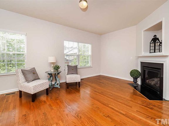 Beautiful town home nestled in a quiet corner Western Wake.Best location Close to shopping,dining,RTP,RDU.The Trifecta of Top Schools!Welcome home to gleaming hardwood floors in the FR & DR.Open floor plan! Tons of natural light! Gas log fireplace for instant romance. KIT boasts Corian countertops, smooth top range, vents outside. Two sets of sliding doors open to a large deck w/private wooded views.MSTR is a lux suite w/vaulted ceilings,huge walk in closet.1st fl BD w/full bath.Swimming pool community
