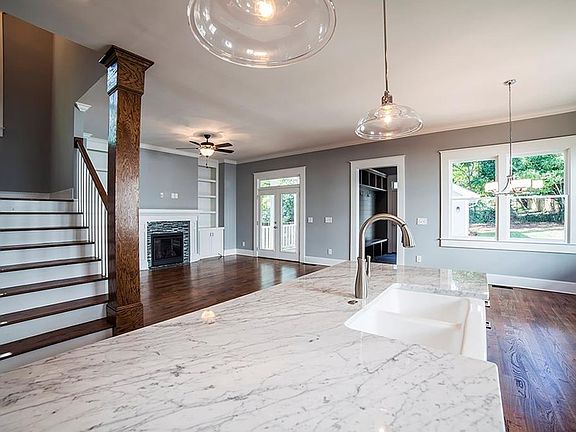 Home has beautiful features including hardwood floors throughout, pocket doors, chefs kitchen w/Bertazonni SS appliances, lovely light fixtures & fans, covered porch & built-out mud room. Master suite is very large w/ built-out closet & spa bath w/double vanities, soaking tub & separate shower w/seamless shower door. There is a bedroom/office on main floor w/a full bath & an additional 3 bedrooms & 3 baths on second floor. Large laundry located on 2nd floor, two car detached garage & more.