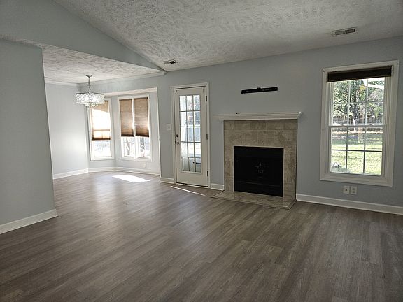 Luxurious modern home in secluded Tarheel Pines neighborhood in Raeford. 3 bedrooms and 2 full bathrooms. Large open living room with vaulted ceiling. Master bedroom with spacious en-suite bathroom with dual vanities and garden tub. Galley kitchen features granite countertops and stainless steel appliances. Backyard is very large, with deck, fire pit, and storage shed; and trees throughout for shade. Garage can fit two cars with extra room for storage.