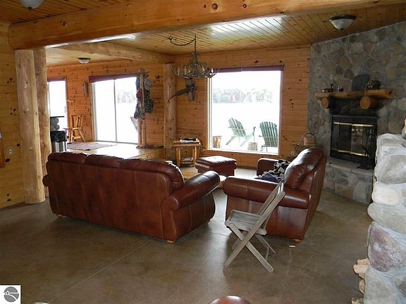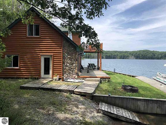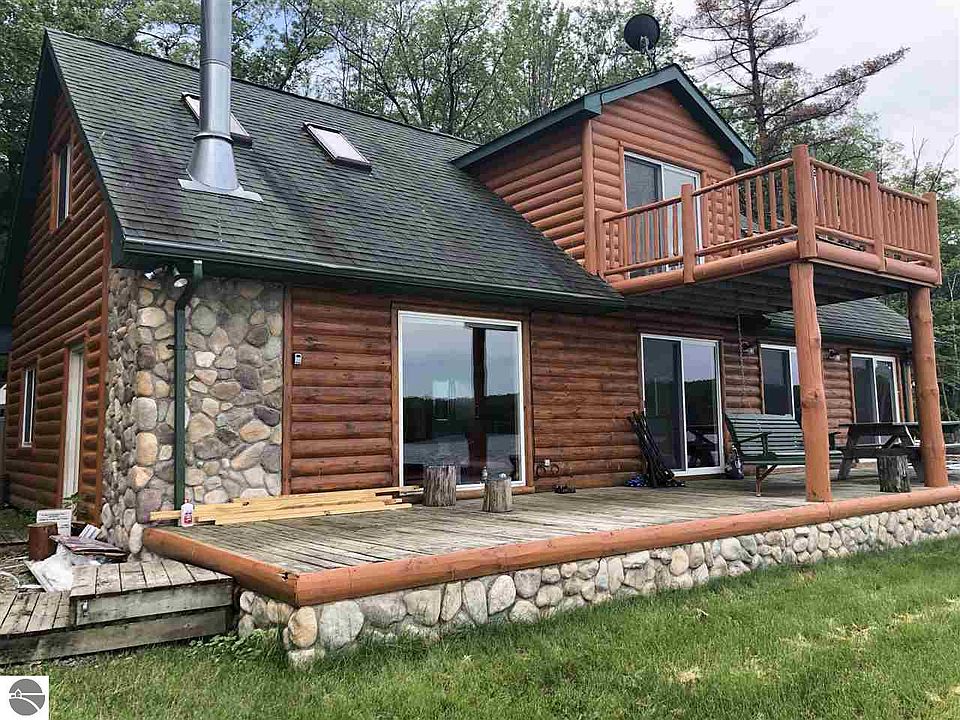 LOON LAKE, 1780 SQ. FT. HOME WITH PANORAMIC VIEW! This amazing lakefront home has much to offer ... .tons of knotty pine walls and floors for the perfect northern feel, a wood burning fireplace and wood burning stove for a cozy, warm atmosphere, large windows and sliding glass doors for amazing views, large living spaces to make family gatherings a breeze, a laundry area, and a forced air furnace for year-round use either as a cottage or a home. Good condition inside and out with log siding, a large treated wood sea wall, an upper story balcony and a large front deck just steps from the water's edge. There's even a private launch area for a boat or pontoon! Loon Lake is a hidden gem ... approx. 95 acres of deep, clear, turquoise colored water, with the majority of the shoreline being Huron National Forest and undeveloped. Great fishing also, including an annual stocking of rainbow trout!