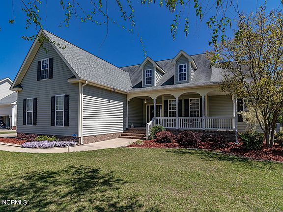 GORGEOUS home in the popular neighborhood of Goose Creek (NO HOA) literally has it all! 4 bedrooms, formal dining room, fenced yard, double lot totaling .75 acres +/-. This home also features 3 full baths. Walk into the foyer and enjoy the living room straight ahead that has gas log fireplace and high ceilings. Formal dining room off the front door and kitchen is partially open to the. living room. Separate eating space off the kitchen. 3 bedrooms on first floor. Master suite is HUGE with separate sitting area/flex space. En suite offers dual vanity, jetted tub, stand up shower and tile floor. 2nd full.bath ALSO features dual vanity and tub/shower combo. 4th bedroom and 3rd full bath is upstairs! AMAZING floor plan. Fully screen in sun porch off the kitchen and fully fenced back yard not only features a shed but ALSO a separate fenced dog area/run. CBA schools, close to base and shopping! NEW HVAC 2021