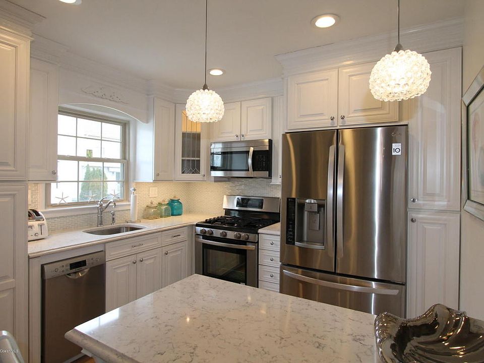 Come live in Avon by the Sea and enjoy this Fantastic 3 bedroom town home with open floor plan, gorgeous custom kitchen with wine bar, Quartz counter tops, stainless steel appliances, wood flooring, washer/dryer, full basement, rear deck with awnings. Large 3rd floor loft used as bedroom or office. 1/2 bath on 1st level, Full bath with dual sinks on 2nd level. Parking in rear of building, pets are welcome. This is a must see.
