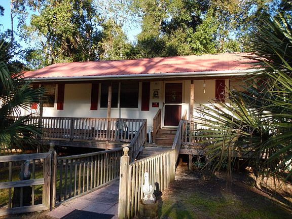 More Bang for Your Buck! 2 BR, 2 Bath home on 5 lots only a few blocks from Steinhatchee's public boat ramp. Home has metal roof and full length front porch, ceramic tile floors for easy maintenance. Breakfast bar seats a crowd easily and kitchen boasts all wood cabinets. Boat barn will hold 2 boats, small shop area. Much of the 5 lots is still wooded for privacy. Nicely landscaped yard. Put this one on your list!!!