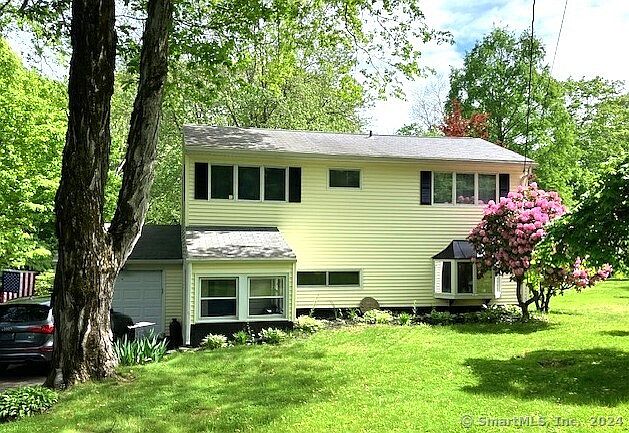 Welcome to 212 Mansion Rd! Casey four level split set in a tranquil area conveniently located near the Hamden/Cheshire line. The .6 acre property boasts plenty of off street-parking, fully fenced yard, attached 1 car garage, a shed w/ workbench and a deck (with electrical) just waiting for an above ground pool! Enter through the breezeway into the eat in kitchen with plenty of storage and counter space. A freshly updated half bath is also located on this level. The lower level may be used as a third bedroom, office or den and features a large closet, new vinyl plank flooring, and is freshly painted. The large 16x13 great room boasts refinished hardwood floors, fresh paint and updated fireplace. This room is loaded with natural light from skylights and windows. A sliding glass door leads to the newly stained oversized deck that is great for outdoor entertaining. Upstairs has two bedrooms with refinished hardwood floors, fresh paint and a full bathroom. This home is move in ready and waiting for you!