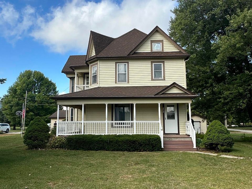 Looking for a winter project with minimal outside work? This solid house offers a great opportunity. Roof, steel siding, newer windows, and outdoor seating space are all taken care of. With a fresh coat of paint and your choice of floor coverings, you can turn this house into a comfortable home to enjoy for years. Key features: Main floor includes kitchen, dining, living room, 1/2 bath, and a versatile office/family room or bedroom, laundry. Upper level boasts 3 bedrooms and a full bath. Outside, you'll find a 2-stall detached garage with additional storage. Enjoy a stamped patio and covered porch for all your entertaining needs. Don't miss the chance to transform this property into your dream home!