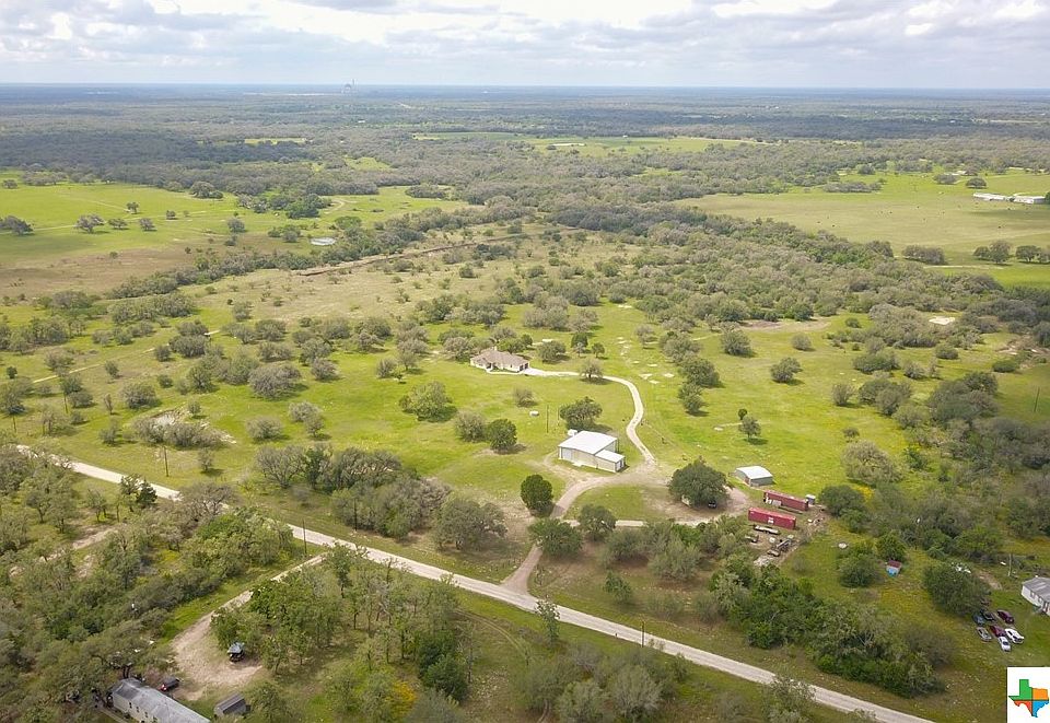 Total package: 30+/- ACRES Main house built 2020 is a lovely 3/2/2 garage built with Austin stone, open concept, high ceilings, granite, spectacular kitchen, fireplace and a view from every window. The BARN has 2013 - 1 bed/ 1 bath living quarters, a separate office or Man Cave up stairs, OVER sized doors and so much more. Green house. HORSE stall - Currently TWO HORSES reside here. The back acreage can be used for hunting dove, watching wildlife, worth exploring for all of it's potential. GOLIAD COUNTY - GOLIAD ISD