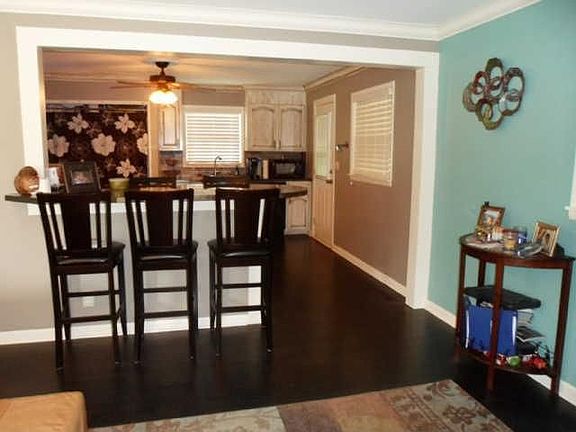 Open,spacious living room- kitchen combo,stone backsplash in kitchen,Hardwood & tile flooring,custom countertops, 3 adequately sized bedrooms,bath has ceramic tile walls & flooring,carport,fenced back yard.Convieniently located in town.