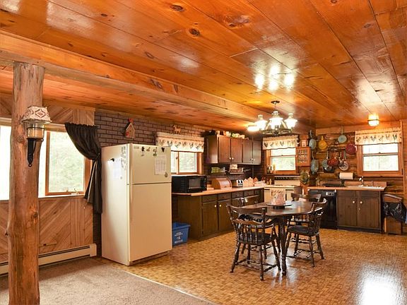 Views of Tully Mountain and Tully Pond accompany this well maintained Log Ranch. The interior of this home offers a very open concept floor plan, with 2 bedrooms, 1.5 baths, kitchen with dining area, spacious living area with wonderful views and fireplace. The dry basement has very high ceilings perfect for a workshop. This home sits on a large, level lot above Tully Pond and on the back side of Packard Pond. There are 4 season of nature to enjoy from this home. Deeded Right of Way for Access in Common to Tully Pond Kayaking, Canoeing, hiking, fishing, snow shoeing, and ice fishing are to be enjoyed. Recent updates include newer roof, recent exterior stain, and paved driveway.