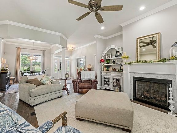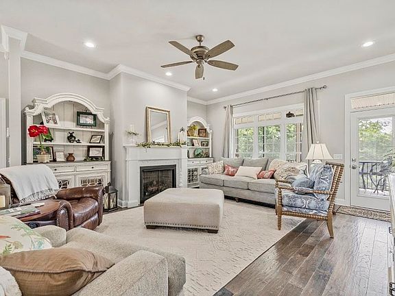 Experience the perfect blend of style and functionality in this stunning new construction home, less than a year old. As you approach, you'll be greeted by professionally landscaped grounds and a charming covered front porch, ideal for relaxing in rocking chairs. Step inside to a beautiful great room featuring a gas log fireplace flanked by custom cabinetry, gorgeous windows with transoms, and a patio door leading to your screened-in porch. To the right, a dining room with elegant pillars awaits your family gatherings. Throughout the house, you'll adore the beautiful hardwood flooring that sets the stage for this home. This home provides four bedrooms and three full baths and feels more spacious than it appears. The primary bedroom offers direct access to a screened-in porch, perfect for enjoying morning coffee. The primary suite is spacious and inviting. The magazine-worthy kitchen boasts warm white cabinetry, a contrasting dark island, hard surface countertops, and abundant natural light. It includes a cozy table setting area and a bar for entertaining guests. Situated on a double lot spanning over an acre, the property features a wrought iron fence enclosing the backyard, accessible from a screened-in porch and an attached two-car garage with a finished bonus room above. The owner spared no expense, ensuring top-of-the-line finishes throughout. The upstairs is equipped with a split unit for heating and cooling, and the house is pre-wired for a generator. The garage is also climate-controlled. Don't miss out on this exceptional property— you won't be disappointed.