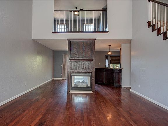 This two-story west side gem features engineered hardwood throughout the downstairs living areas, flowing into the primary suite. The backyard features a floating wood deck, firepit, a peach tree, shed, and an 8-ft cedar fence. The kitchen boasts granite countertops, breakfast bar, two tone cabinets, a travertine tile backsplash, Frigidaire appliances, and a new faucet and disposal. All cabinetry and accent wood throughout the home has been refinished, including the double-sided gas fireplace. Fresh interior paint in the living areas to bring a modern feel home. Upstairs in the loft area, is the bonus living area with built in desk and shelves and a new fixture. Also, you will find three additional bedrooms and a full refinished bathroom. Seller is agent's spouse.