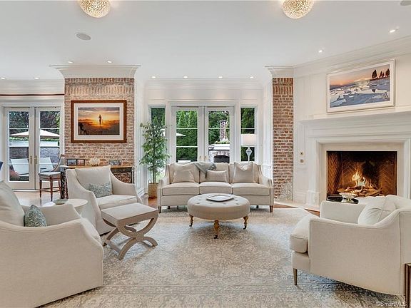 Iconic Georgian white washed brick town house on Milbank Avenue. Much admired for its superb curb appeal and access to all downtown restaurants and amenities. Light filled rooms with great scale and ceiling height. Enter through the oversized front door into the living/dining and kitchen area where the white washed brick continues; complemented by dark wood floors, 10 ft. ceilings and oversized fireplace. 2 sets of French doors lead out to private garden courtyard patio with fountain and fireplace - perfect for entertaining. Direct garage access, laundry and powder room also on the first floor. Second floor features a large master bedroom with his and hers closets and oversized master bath as well as the large light filled guest suite with soaring ceiling, sky lights and ensuite bath. The lower level family room continues the excitement with bright windows, floor to ceiling stone fireplace along with a flex office/gym and full bath. Not to be missed!
