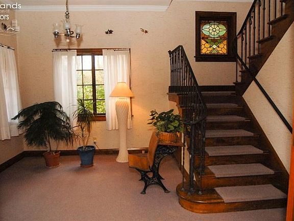 Well maintained Century Home in the heart of Historic Downtown Port Clinton. This house is full of character, featuring hardwood floors, beautiful carved woodwork that has NEVER been painted, stained glass windows, 12 ft tall ceilings and beautiful staircase with custom made wrought iron rail! 3+ detached garage with an income producing rental above. House is currently being used as a one family dwelling but can be converted into a two family easily. PLUS there is a one bedroom apartment above the garage which is currently rented. Live in part of the house and rent the other two to help with the mortgage. Formerly was a photography studio.