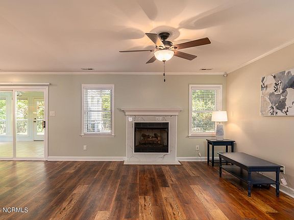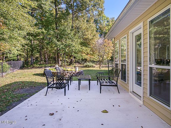 Welcome to your dream home nestled in the heart of New Bern. This 3-bedroom, 2-bathroom residence offers a delightful blend of comfort, style, and convenience. As you approach, you'll be greeted by an inviting front porch that sets the tone for the warm and welcoming atmosphere within. Enter inside to discover a spacious open floor plan that effortlessly combines functionality and aesthetics. The living room features a cozy gas log fireplace, perfect for those chilly winter evenings, while the adjacent kitchen is a culinary enthusiast's dream. With a generous breakfast bar and ample counter space, you'll have no trouble preparing and sharing your favorite meals with guests The owner's suite is a true retreat, offering a serene oasis filled with natural light. The en-suite bathroom boasts dual vanities, a luxurious jetted tub, and a separate walk-in shower. One of the standout features of this home is the Carolina room, bathed in natural light, with views of the new back patio and a private backyard. To top it off, this home comes with an impressive list of new upgrades: new lighting in the kitchen and breakfast area, 3 new ceiling fans, updated fireplace with tile, freshly painted foyer, bedrooms, and owner's suite bathroom, new carpet in all bedrooms, new LVP flooring in dining room, kitchen, breakfast nook, hallway, and living room, new faucet and vanity with marble countertops in the owner's suite, all new blinds throughout, new patio out back, and a new fence! Location is key, and this home doesn't disappoint. In less than 10 minutes, you can reach the Carolina East Medical Center, ensuring peace of mind in case of any medical needs. Additionally, Historic Downtown New Bern is just a short drive away, offering a wealth of dining, shopping, and cultural experiences. Don't miss the opportunity to make this Village in the Woods gem your new home. Call us today to schedule your private tour!
