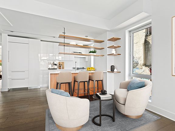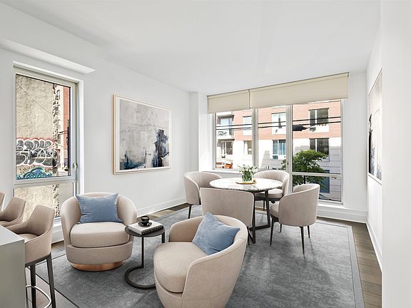 The unparalleled oversized THREE-bedroom, 3-bathroom masterpiece is finally available for you to call your own. Situated in TWO12 North 9th, a design-driven residential canvas for the Williamsburg lifestyle, this home will far exceed your expectations in terms of space and design. The cherry on top? It comes with INDOOR DEEDED PARKING and a TAX ABATEMENT! Inside, the nearly half-floor residence totaling 1,696 square feet, you'll admire the thoughtfully planned out floorplan, with interiors by Meshberg Group. This sprawling residence not only has incredible interior space, but the south facing terrace sits at almost 1,000 square feet. The open-plan windowed kitchen opens to the dining room with dual exposures, creating the opportunity to have the grand dining room you've only dreamed of. The space is so versatile, if you aren't looking for a separate dining room, it can easily be used as a second living room. The kitchen itself is made up of custom lacquer and veneer wood cabinetry, quartz countertops, subway tile backsplash, Bertazzoni range, Bosch dishwasher and Liebherr refrigerator and freezer. The large south facing main living room is grand in every way. The sheer size is extraordinary and gives you tons of room to spread out and create the ultimate dream living space. The two French doors open onto an extraordinary terrace allowing the full opportunity to bring these spaces together. Back inside the main living room, there is a large alcove which can easily be where you can add your dining table if you are looking for a more open living/dining space. The primary suite facing south includes a custom closet, and a sleek on-suite bathroom with a glass enclosed shower and dual-vanity storage. The other bedroom facing south is large enough for a queen bed and has great closet space. The other queen-sized bedroom in the front of the home was outfitted with an entire wall of custom closets and will blow any clothes horse away. The two full baths in addition to the on-suite have deep soaking tubs and custom vanities with plenty of storage space. All three bathrooms have the same palette of warm earth tones and Grohe fixtures. Building amenities include a dramatic two-story lobby with a custom light installation, a striking rooftop mural by contemporary artist David Paul Kay, Taschen Art Library, Fitness Studio, bike room, common outdoor terrace, and indoor parking garage. Under 5 minutes to the L train and McCarren Park. Fantastic amenities in every direction!