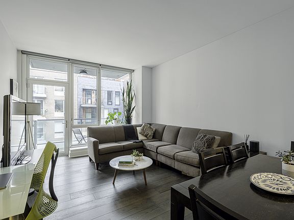 SORRY, but NO pets allowed Spacious Corner One-Bedroom for Rent at TWO12 North 9th Street Welcome to Residence 2A, the largest one-bedroom in the building at 702 SF, offering an exceptional blend of space, style, and functionality in the heart of Williamsburg. Nestled between Roebling and Driggs, TWO12 North 9th Street is a design-driven residential experience crafted for modern living. This sun-drenched corner unit boasts oversized windows allowing for abundant natural light from morning through the afternoon. The thoughtfully designed layout features: King-sized bedroom (12x12) with fantastic closet space In-unit washer/dryer for convenience Ash grey hardwood flooring throughout Custom lacquer, wood, and metal cabinetry Premium appliances from Bertazzoni, Bosch, and Liebherr Spa-like designer bath with a deep soaking tub and partially glass-enclosed shower Additional coat closet in the entry foyer for extra storage Situated in one of Williamsburg's most coveted locations, TWO12 North 9th Street offers a seamless blend of modern luxury and effortless urban living. Don't miss the opportunity to call this stunning residence home. The building amenities include a dramatic two-story lobby with a custom light installation, a striking rooftop mural by contemporary artist David Paul Kay,Taschen Art Library, Fitness Studio, bike room, common outdoor terrace and a parking garage (inquire for availability) Minutes to the L and G trains and McCarren Park. Fantastic amenities in every direction!