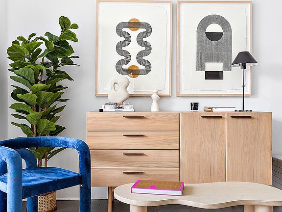 Upon entry you will notice the thoughtfully designed, yet quite large, living/dining area seamlessly connecting to an oversized terrace that can easily accommodate true outdoor living and dining furniture and bbq - A truly unique entertaining experience in New York City! Inside, an open and comfortable kitchen including an island features top-notch appliances including Bertazzoni range, Bosch dishwasher and Liebherr refrigerator and freezer surrounded by quartz countertops and custom lacquer cabinetry. The perfect contract to the unit’s dark ash-grey hardwood floors.