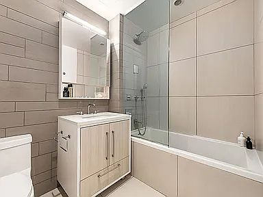 212 N 9th Street is located in the heart of Williamsburg, steps away from McCarren Park, L train, Lilia, and waterfront. The building is immaculately maintained with a fitness studio, two story lobby featuring a custom light installation, 24hr virtual doorman, Taschen Art Library, bike room and a furnished common courtyard 212 N 9th Street Unit 5C features an open floor plan, floor to ceiling windows, and high ceilings which combine to offer an inviting space that is perfect for work from home and entertaining. There is a private balcony attached to the living room which gives a breath of fresh air. The bedroom fits a king bed and features a large closet with custom shelving and blackout shades. There is also a walk-in closet near the entryway convenient for coats and other storage that also features custom shelving. Interiors designed by The Meshberg Group feature hardwood flooring, custom lacquer, wood and metal cabinetry, Bertazzoni, Bosch and Liebherr appliances and a Bosch washer/dryer. Please contact if interested in viewing the unit Available Starting February 15th
